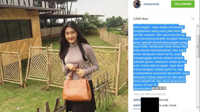 "Assalamualaikum, selamat sore teman-teman. Udah lama gak update, banyak yang menanyakan kabarku lewat DM, WhatsApp, dan lainnya. Untuk itu Rania mau konfirmasi bahwa Rania positif Covid-19,” tulisnya dalam Instastory di akun @chaaarania, Selasa (18/8/2020).