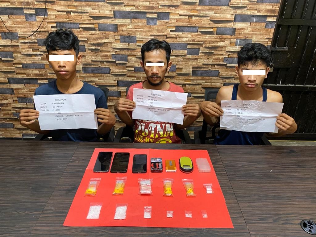 Terlibat tindak pidana narkotika jenis sabu-sabu, tiga orang warga Legok, Danau Sipin, dirungkus Satres Narkoba Polresta Jambi.