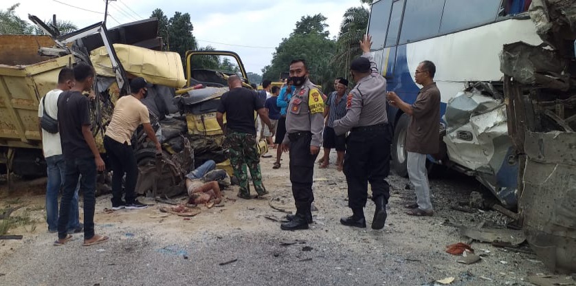 Kecelakaan maut ini melibatkan antara truk dan bus terjadi di Jalan Lintas Sumatera, Kabupaten Bungo.