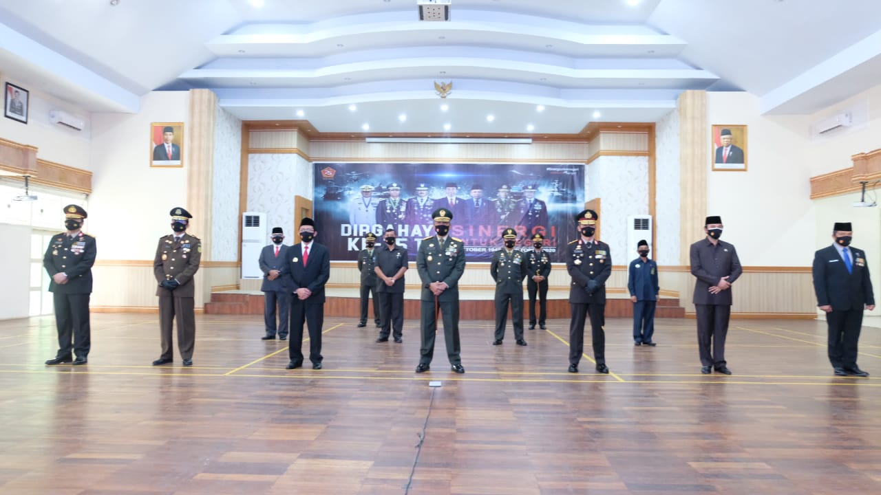 Irjen Pol Drs Firman Shantyabudi, Msi mengikuti Upacara Peringatan HUT TNI ke-75 yang bertempat di Balai Prajurit Makorem 042 Gapu