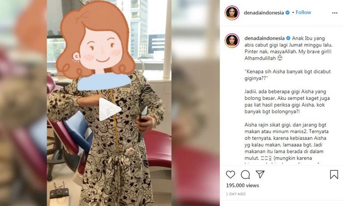 Padahal menurut Denada, Aisha adalah anak yang rajin menggosok gigi setiap selesai makan.