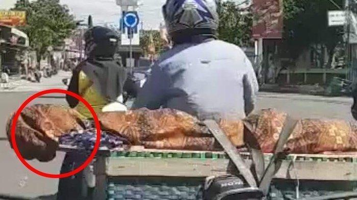 Video itu memperlihatkan pemotor membawa jenazah yang ditaruh di atas beronjong di bagian belakang sepeda motor.