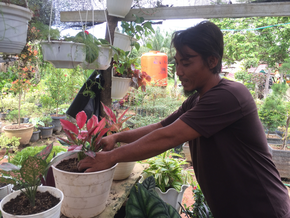 Kemudian Jimi menyebutkan setelah ditanam Aglaonema disiram paling sedikitnya dua kali dalam sehari.