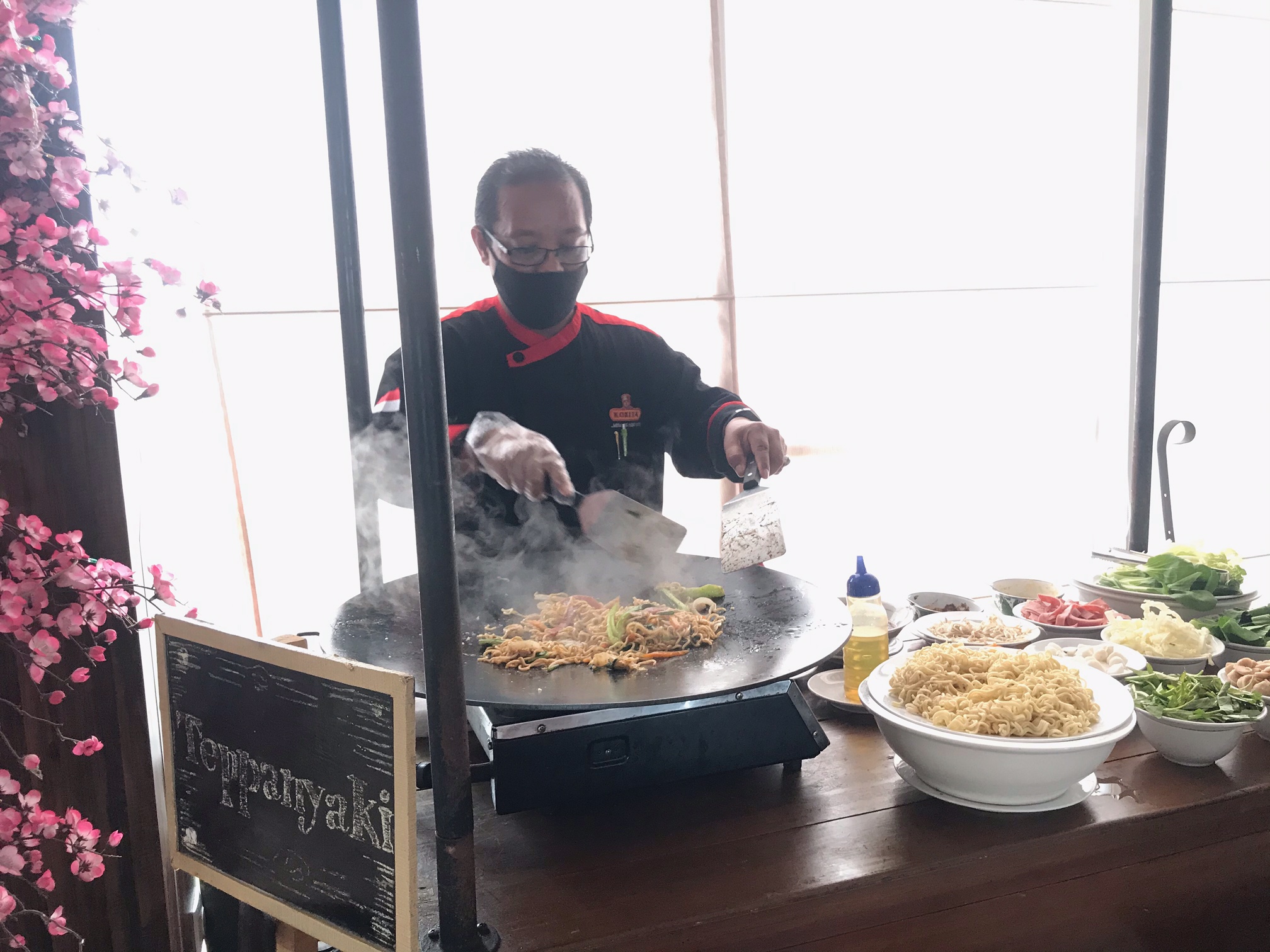 Dikatakan Chef Zikwan, ada banyak sekali pilihan makanan yang disediakan di Rock N Sugar Coffee & Bistro Luminor Hotel ini, mulai dari makan siang bersama (Maksibar) dan juga terdapat Angkringan, Jajanan pasar, salad bar, dan store Teppanyaki.