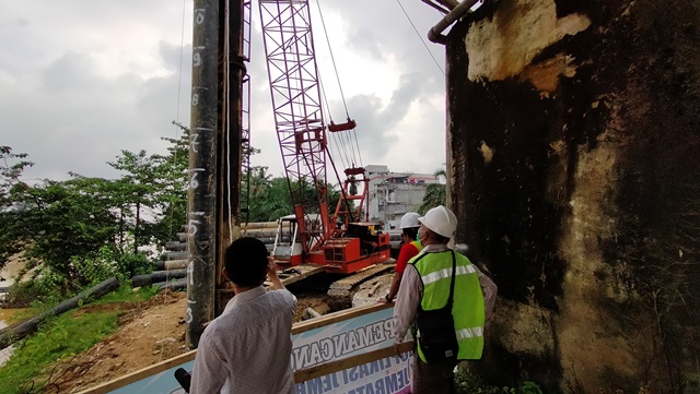 TRIBUNJAMBI.COM, SAROLANGUN - Pembangunan jembatan Sarolangun tepat di jalan lintas antar provinsi mulai dikerjakan.