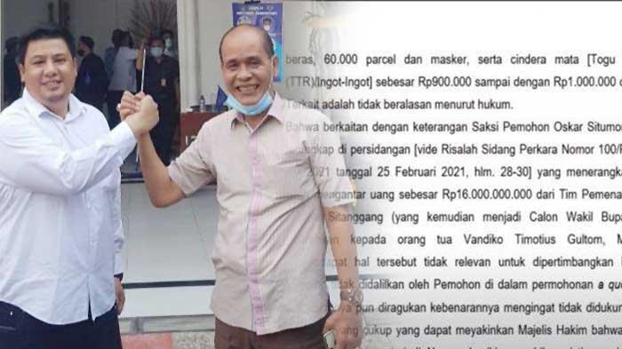 Hal ini menyusul putusan Mahkamah Konstitusi atas gugatan sengketa Pilkada Samosir, yang memutuskan pasangan Vantas tidak terbukti melakukan politik uang Rp 100 miliar.