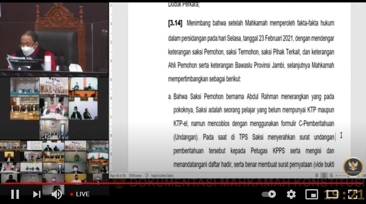 Saat ini sidang MK bernomor perkara 130/PHP.GUB-XIX/2021tentang Perselisihan Hasil Pemilihan Gubernur Provinsi Jambi Tahun 2020 bisa dilihat di link Youtube berikut.