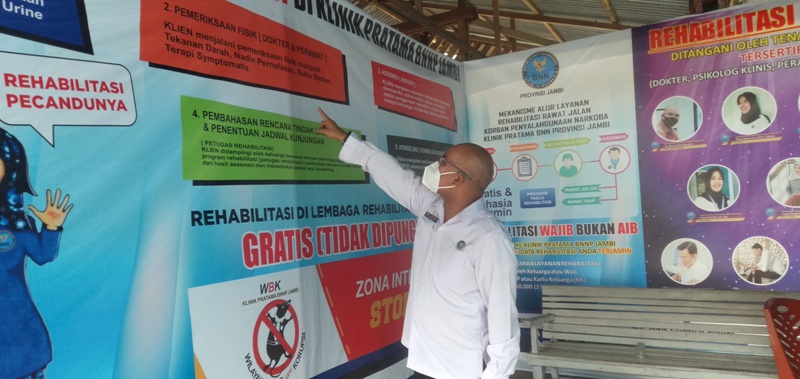 "Adapun lembaga yang dimaksud adalah lembaga rehabiltasi medis dan sosial yang dikelola dan atau dibina dan diawasi oleh Badan Narkotika Nasional," tutur Drg Mario Leonid Supusepa, Koordinator Bidang Rehabilitasi BNNP Jambi.