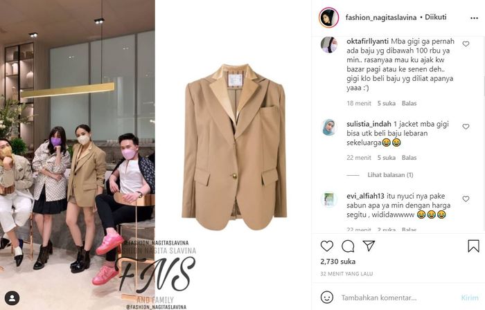Sontak saja netizen mengomentari busana Nagita Slavina kali ini.