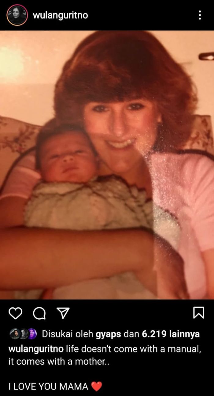 "Life doesn't come with a manual, it comes with a mother. I LOVE YOU MAMA," tulis Wulan Guritno dikutip Grid.ID.