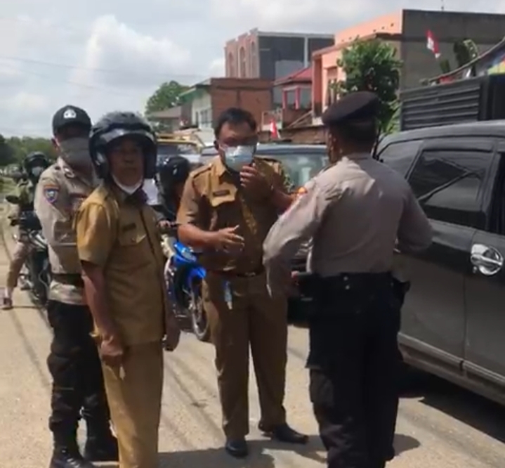 TRIBUNJAMBI.COM, SENGETI - Kepala Inspektorat Muarojambi Budi Hartono terjebak di pos penyekatan PPKM Level 4 Kota Jambi di Jalan A Majid, Kelurahan Teluk Kenali, Buluran, Selasa (28/8/2021).