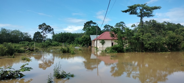 "Jalan ke empat rumah dan sebagian dapur warga sudah karam (terendam banjir) sekira setinggi betis orang dewasa," ungkap Amerza saat ditemui, Selasa (7/9/2021).