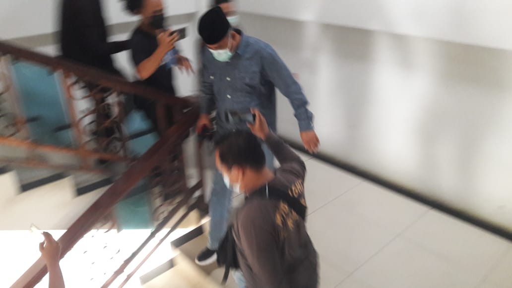 Setelah tiba di lantai dasar Gedung Lama Mapolda Jambi, Hillalatil langsung berlari meninggalkan awak media, dan langsung menaiki mobilnya.
