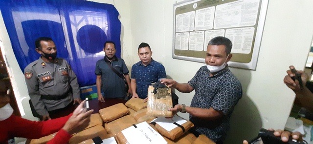 Empat karung yang ditemukan warga di pinggir Jalan Lintas Sumatera Desa Mentawak Kecamatan Nalo Tantan Merangin ternyata berisi 80 paket ganja kering
