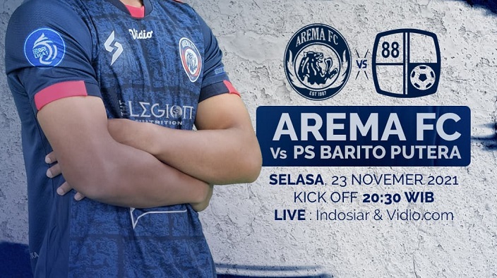 Jadwal siaran langsung BRI Liga 1 malam ini ada Arema FC vs Barito Putera siaran langsung malam ini pukul 20.30 WIB link nonton tv online vidio.com.