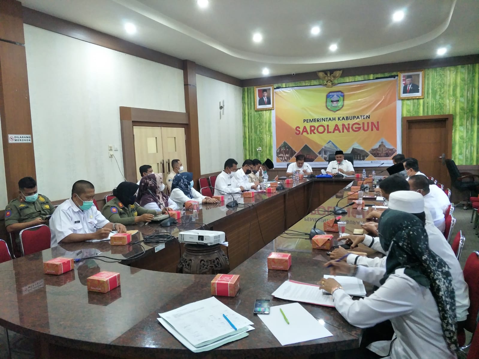TRIBUNJAMBI.COM, SAROLANGUN - Rapat kerja menghadapi perayaan hari besar keagamaan Natal dan tahun baru 2022 dilakukan oleh Tim Satgas Pangan, bersama Tim Pengendali Inflasi Daerah (TPID) Sarolangun, Rabu (22/12/2021).
