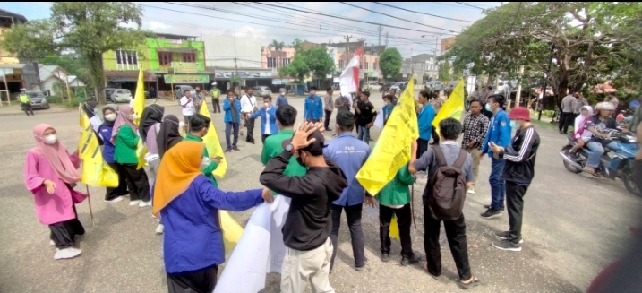 Sejumlah Mahasiswa PMII Sarolangun Mengelar Aksi