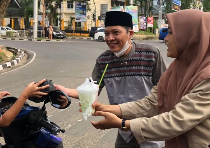 TRIBUNJAMBI.COM - Sebanyak 30 mahasiswa yang tergabung dalam Himpunan Mahasiswa Program Studi (HMPS) Pendidikan Islam Anak Usia Dini turun ke jalan membagi-bagikan takjil.