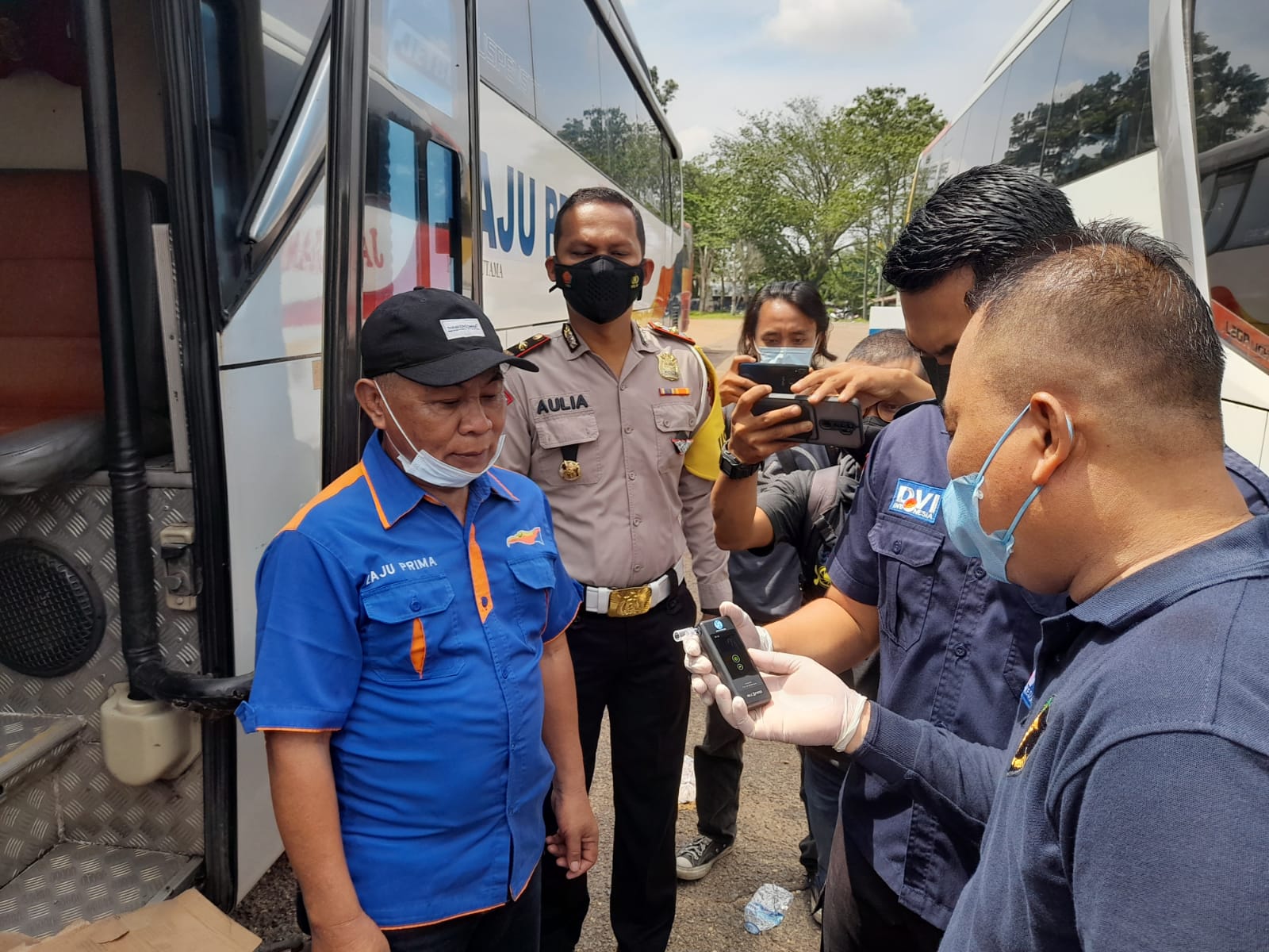 Di lokasi, sejumlah sopir di cek urin, kemudian mendatangi bus yang terparkir dan memilih secara acak sopir untuk turut dilakukan cek alkohol menggunakan alat khusus milik Jasa Raharja.