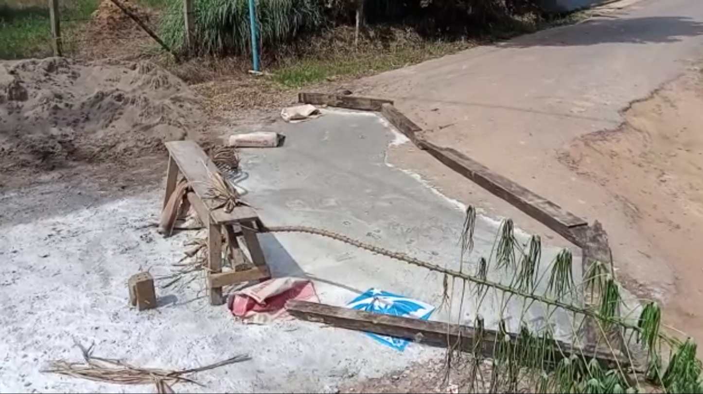 Pembangunan jalan menggunakannya uang swadaya masyarakat yang terlihat seperti tambalan, Senin (23/5/22).