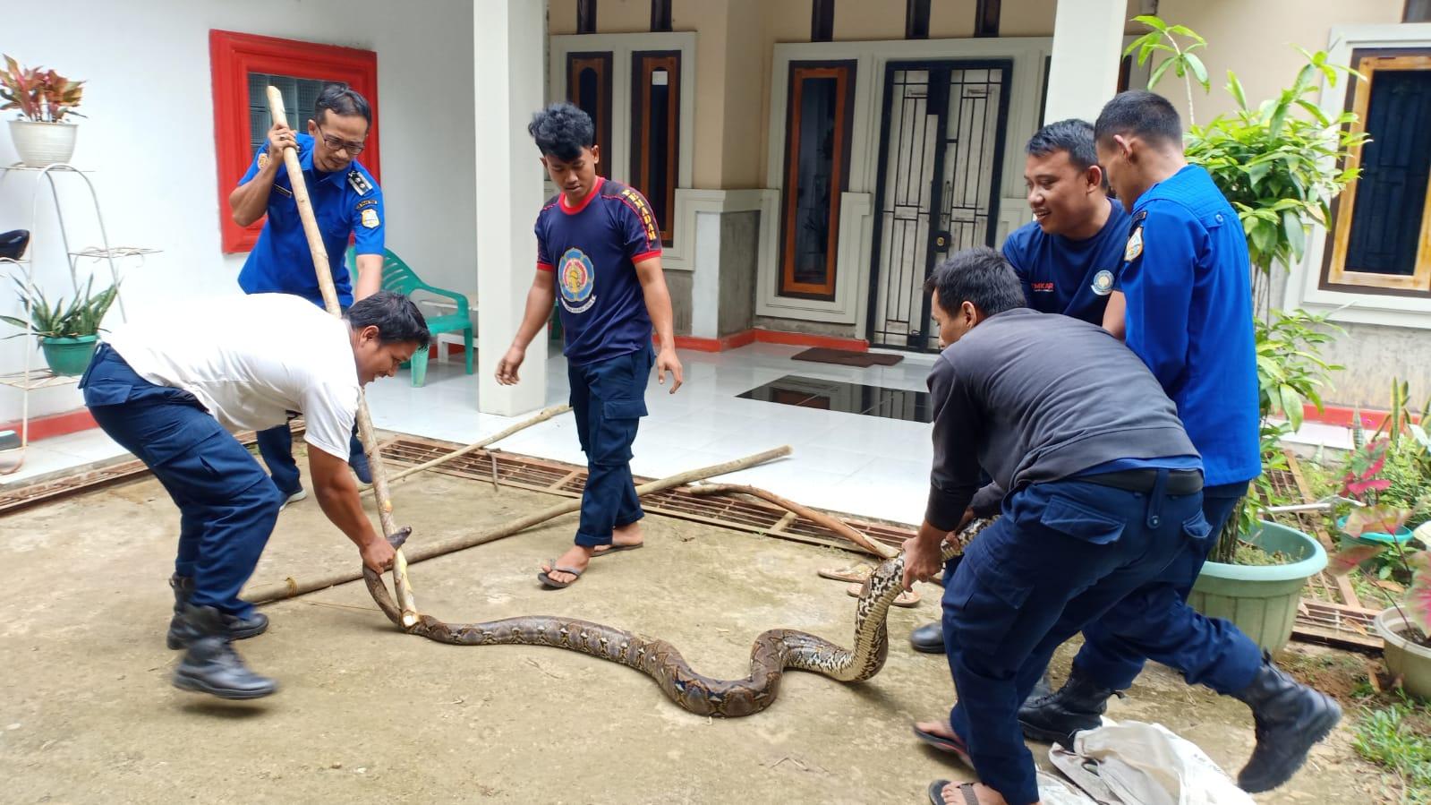 Ular berukuran besar itu, diketahui masuk ke pekarangan rumah Syadad setelah melintas dari perkebunan yang ada disekitar rumah warga.