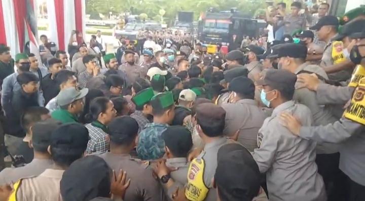 Pantauan dilokasi aksi demonstrasi puluhan mahasiswa HMI Jambi itu juga sempat terjadi dorong-dorongan dengan petugas . Karena puluhan mahasiswa hendak memaksakan memasuki Kantor DPRD Provinsi Jambi.