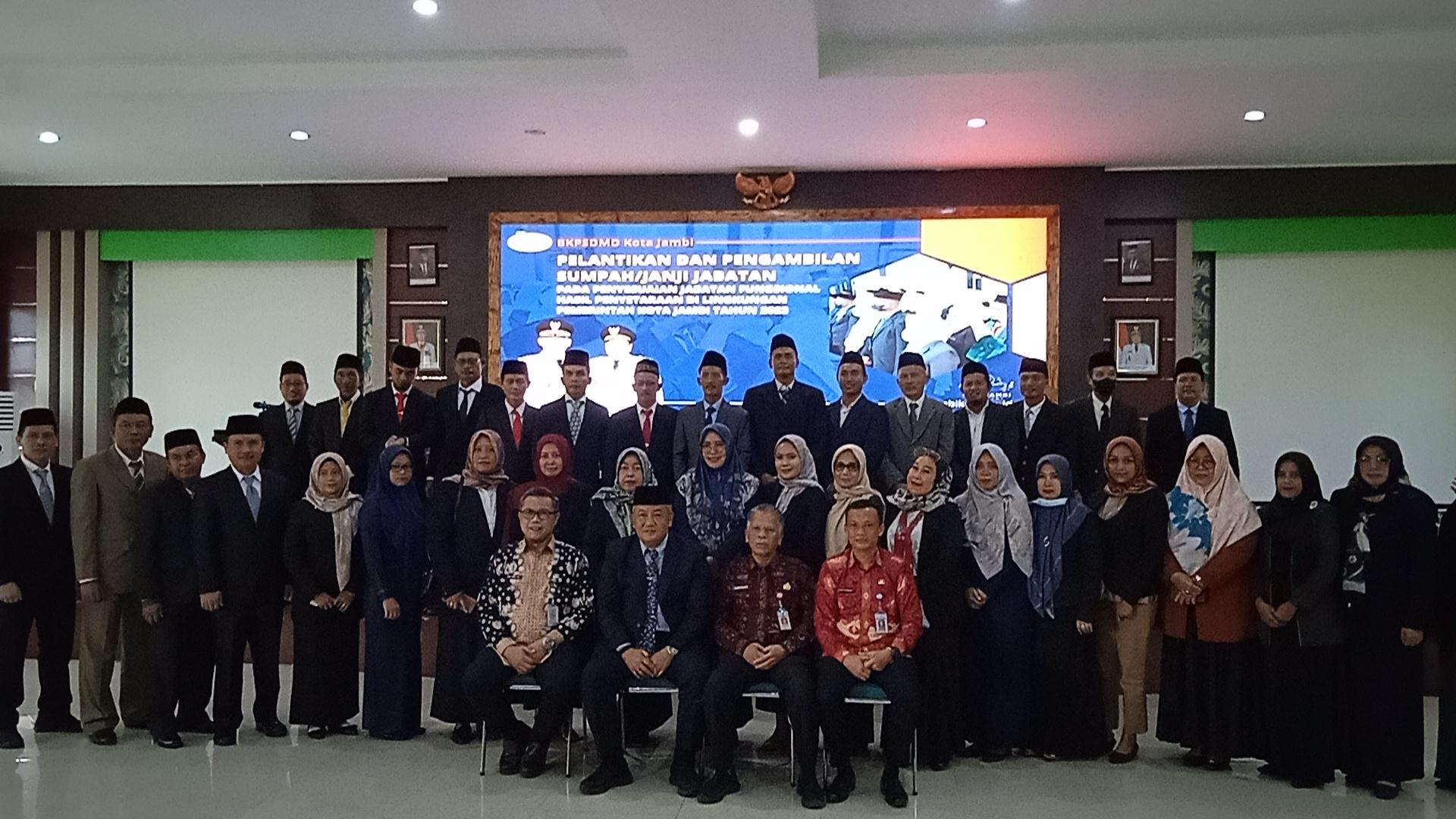 Sebanyak 45 pejabat fungsional dilantik langsung oleh Sekda Kota Jambi di Aula Dinas Badan Kepegawaian dan Pengembangan Sumber Daya Manusia Daerah (DPKPSDMD) Kota Jambi.