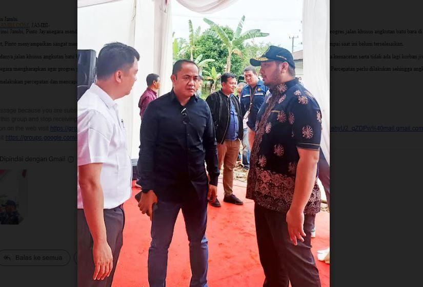 TRIBUNJAMBI.COM, JAMBI - Wakil Ketua DPRD Provinsi Jambi, Pinto Jayanegara mendampingi Direktorat Jenderal Mineral dan Batubara Kementerian ESDM M Idris Sihite untuk meninjau langsung progres jalan khusus angkutan batubara di Desa Teluk Jambu, Muaro Jambi pada hari Selasa (28/02/2023).