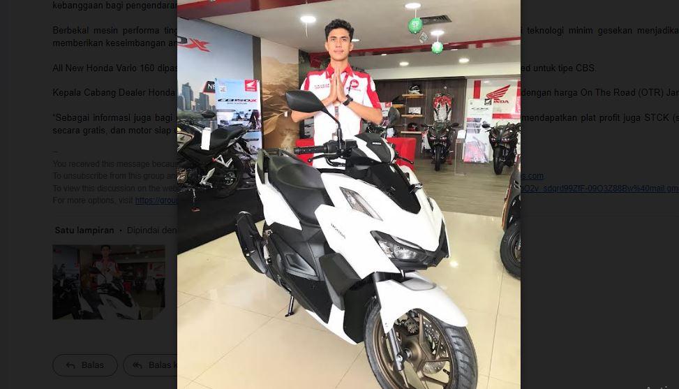 Manager Marketing Sales Sinsen Hendy Tanova mengatakan Sinsen bersama seluruh jaringan Dealer resminya di Provinsi Jambi kembali memberikan program menarik khusus pembelian New Honda Vario 160 berupa voucher diskon sebesar Rp 777 Ribu dengan syarat dan ketentuan berlaku.
