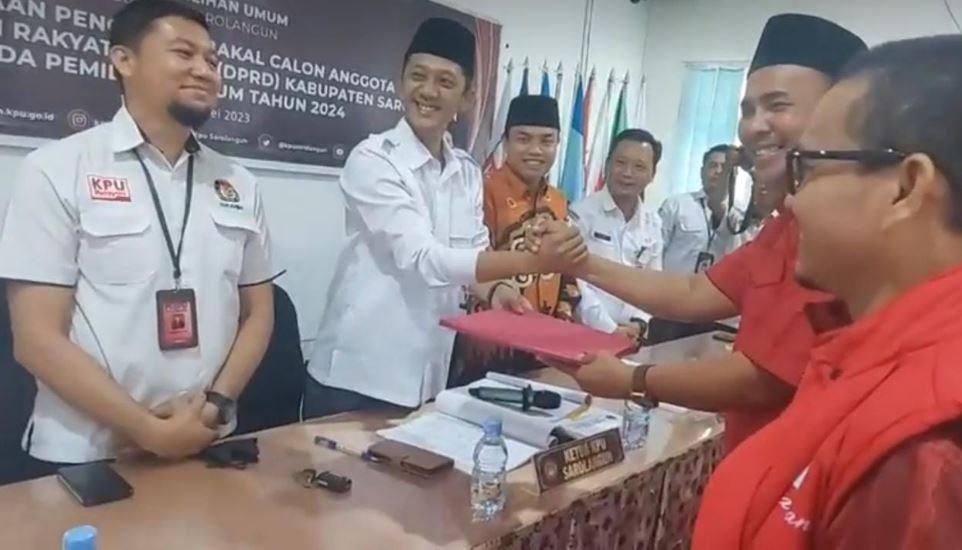 Partai Demokrasi Indonesia Perjuangan menjadi partai Politik peserta pemilu pertama melakukan pendaftaran ke KPU Kabupaten Sarolangun