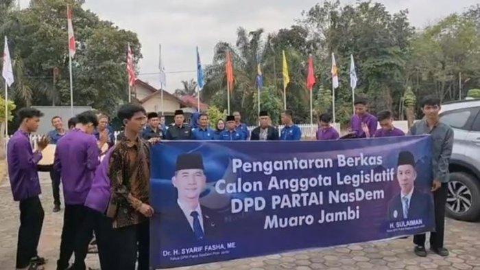 Puluhan Bakal Calon Legislatif (Bacaleg) dari Partai Nasional Demokrat Kabupaten Muaro Jambi mendatangi kantor KPU Kabupaten Muaro Jambi.