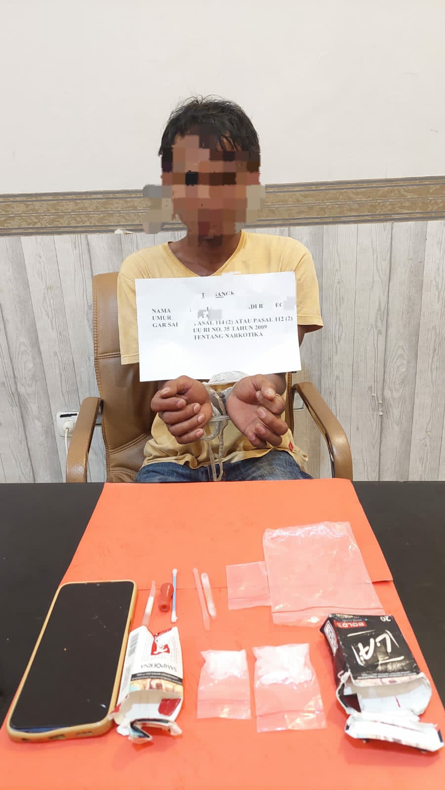 Dari penangkapan pelaku ini, petugas mengamankan barang bukti dua paket narkoba jenis sabu yang disimpan pelaku di dalam kotak rokok.