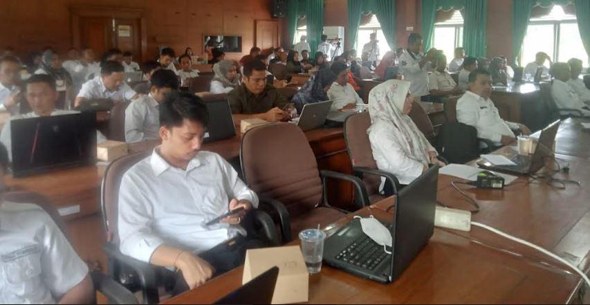Pemerintah Kabupaten Tanjung Jabung Timur gelar rapat penguatan penyebaran informasi pembangunan melalui website di Aula Kantor Bupati Tanjabtim pada