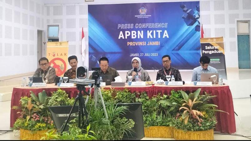 Kantor Perwakilan Kementerian Keuangan Provinsi Jambi menggelar kegiatan press conference (konferensi pers, red) mengenai kinerja APBN semester I tahu