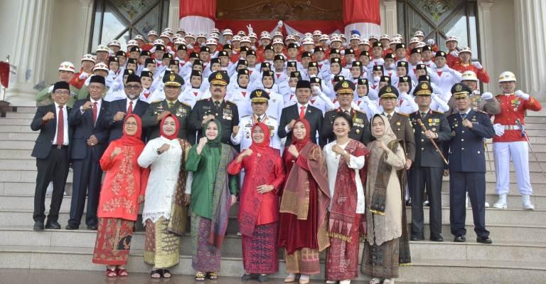 Gubernur Jambi Dr Al Haris bertindak sebagai inspektur upacara (Irup) dan dihadiri oleh sejumlah Forkopimda Jambi, serta dari unsur TNI, Polri, PNS, Dosen, Guru, Pelajar dan Masyarakat.