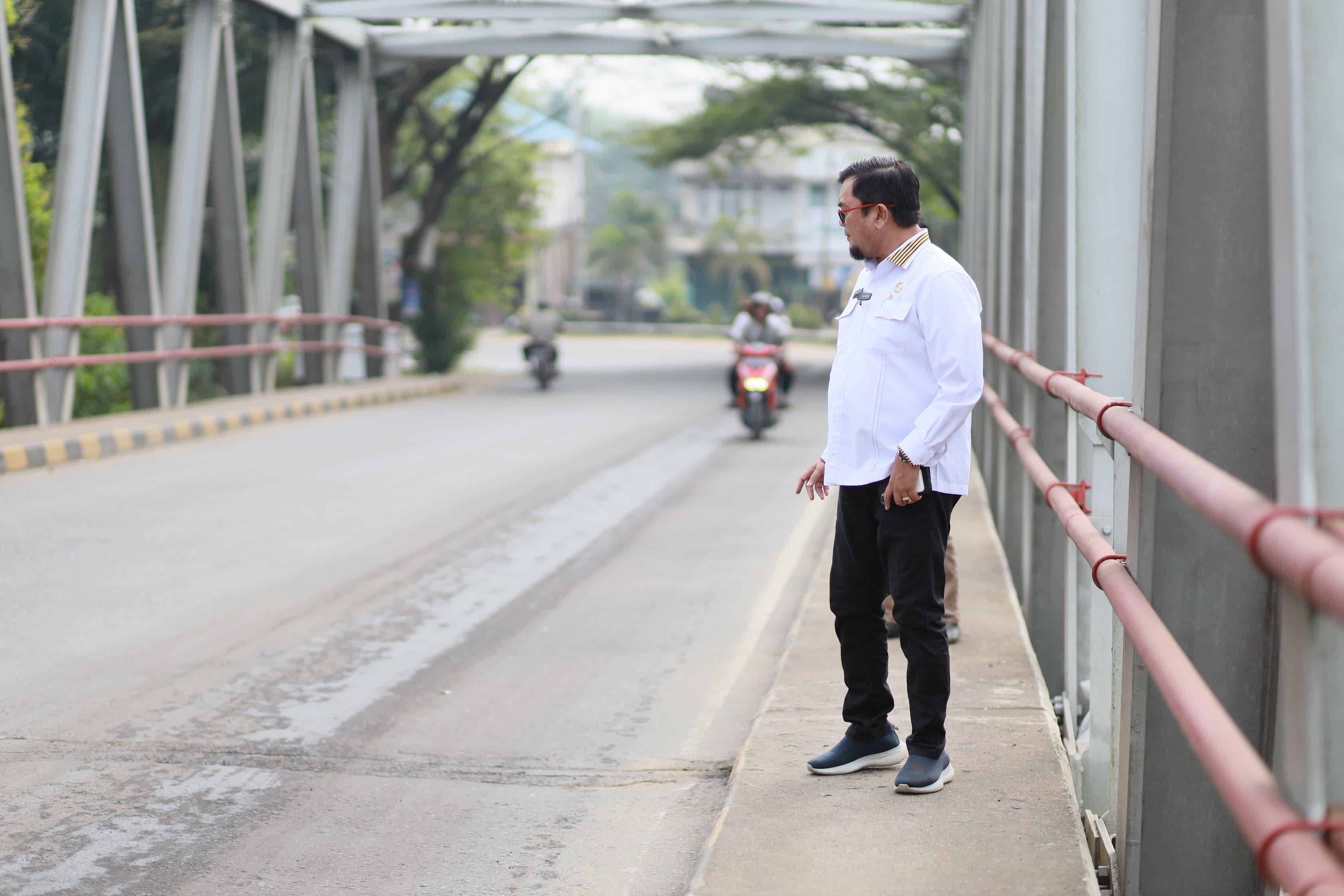 TRIBUNJAMBI.COM,JAMBI- Anggota Komisi III DPRD Provinsi Jambi Ivan Wirata tinjau lalulintas di jembatan auduri satu, di Kelurahan Penyengat Rendah, Kota Jambi, Senin (11/9/2023).