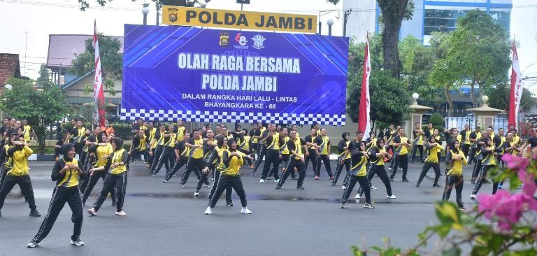 Direktorat Lalu Lintas (Ditlantas) Polda Jambi menggelar olahraga bersama di Lapangan Polda Jambi
