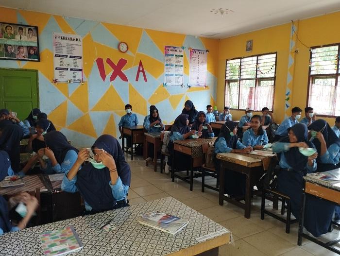 "Untuk sementara proses belajarnya banyak diruangan, selain itu juga kami menganjurkan kepada anak-anak harus memakai masker yang telah disediakan dari pihak sekolah," jelasnya.