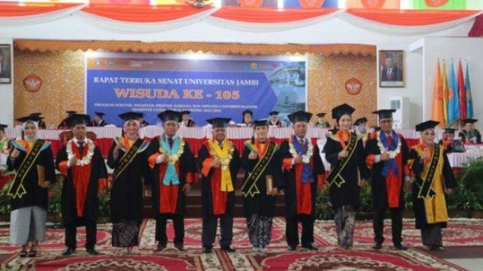 Universitas Jambi resmi mewisuda sebanyak 1.141 orang wisudawan/ti dengan rincian Doktor sebanyak 9 wisudawan, Magister sebanyak 38 wisudawan