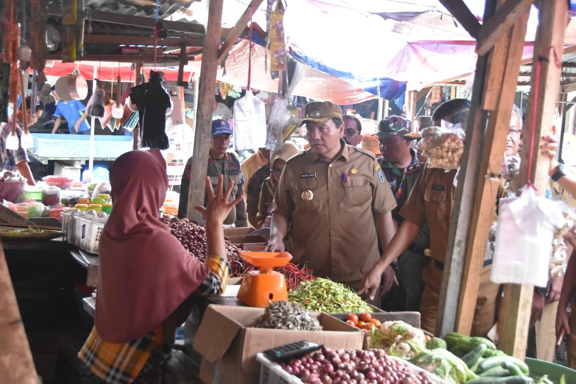 Penjabat Bupati Sarolangun Bachril Bakri melakukan Inspeksi Mendadak (Sidak) di pasar atas Sarolangun, Selasa (7/11/2023) pagi.