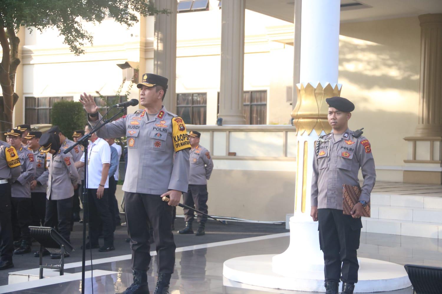 TRIBUNJAMBI.COM - Kapolda Jambi Irjen Pol Rusdi Hartono pimpin apel perdana personel pada Tahun 2024 di Lapangan Hitam Mapolda Jambi, Selasa (2/1/2024).