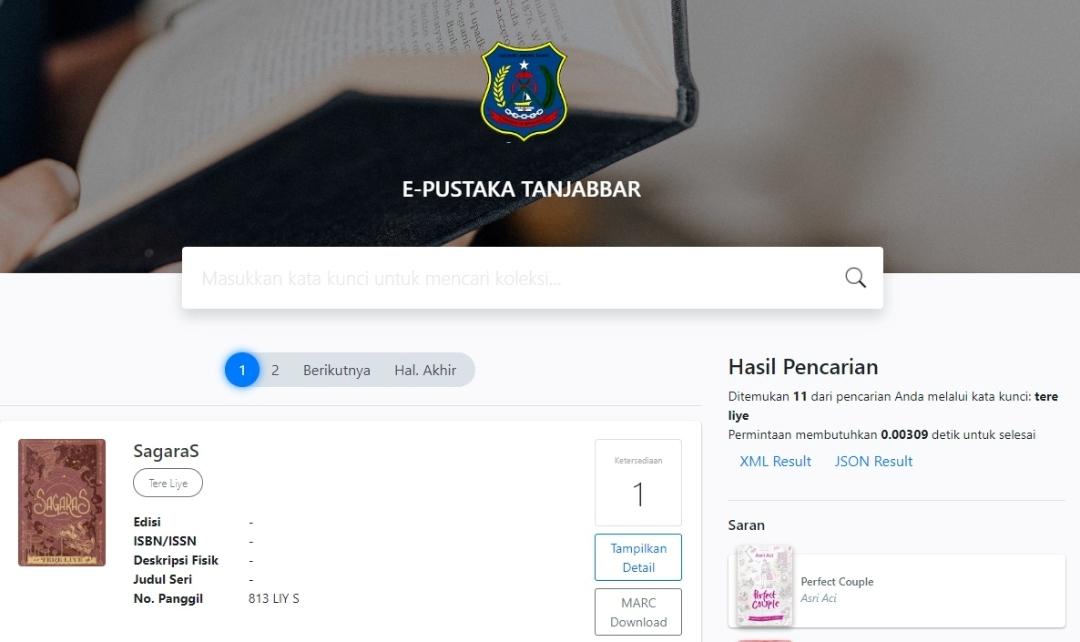 Dinas Perpustakaan dan Arisp Daerah Kabupaten Tanjabbar diduga memuat E Book Ilegal milik penulis buku Tere Liye di website E- Pustaka Tanjabbar.