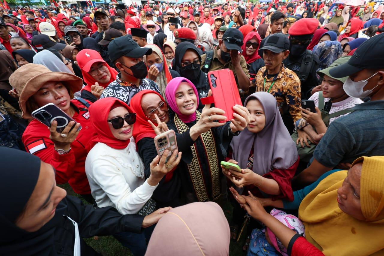 TRIBUNJAMBI.COM, KOTA GAJAH – Warga Kota Gajah, Lampung Tengah mengagumi sosok istri calon presiden (capres) nomor urut 03, Siti Atikoh Ganjar usai berjumpa secara langsung di Lapangan Merdeka, Rabu (10/1/2024).
