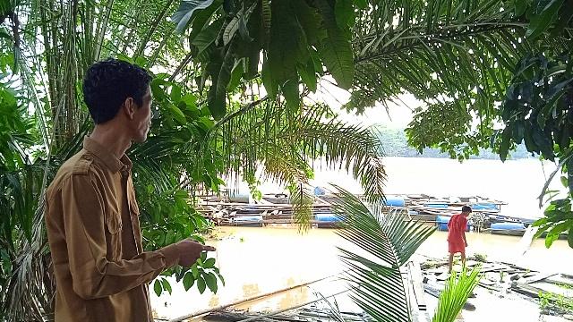 Akibat debit air Sungai Batanghari yang meningkat, ratusan kerambah ikan milik Masyarakat Desa Olak Kecamatan Muara Bulian Kabupaten Batanghari hilang