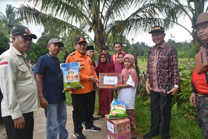 Penjabat Bupati Sarolangun Bachril Bakri meranton kunjungi masyarakatnya terdampak banjir sekaligus berikan bantuan.