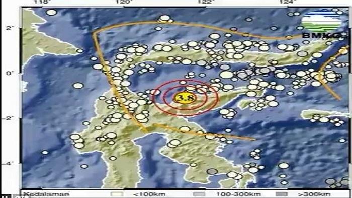 Sedangkan untuk titik lokasinya, berada di koordinat 1.10 Lintang Selatan, 121.50 Bujur Timur.