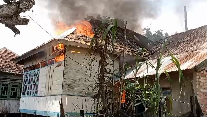Satu unit rumah panggung milik M Zuhdi di RT 01 Desa Teluk Rendah Ilir Kecamatan Tebo Ilir, Kabupaten Tebo hangus usai terjadi kebakaran.