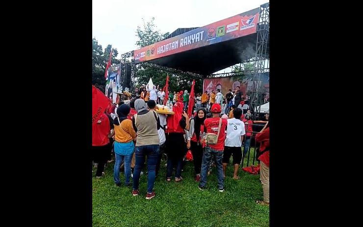TPD pasangan Ganjar-Mahfud Provinsi Jambi menggelar Kampanye Akbar Hajatan Rakyat di GOR Kota Baru, Kota Jambi, Sabtu (3/2/2024).