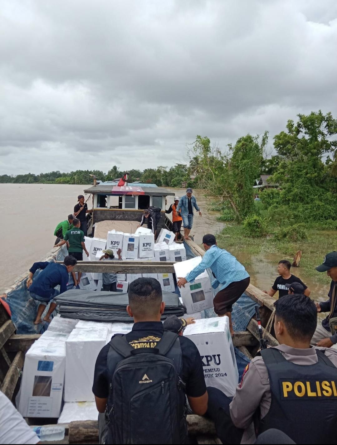 "Jadi, hari ini kita distribusikan logistik pemungutan suara menggunakan jalur air yang nantinya langsung kita sebar di enam desa," jelasnya.