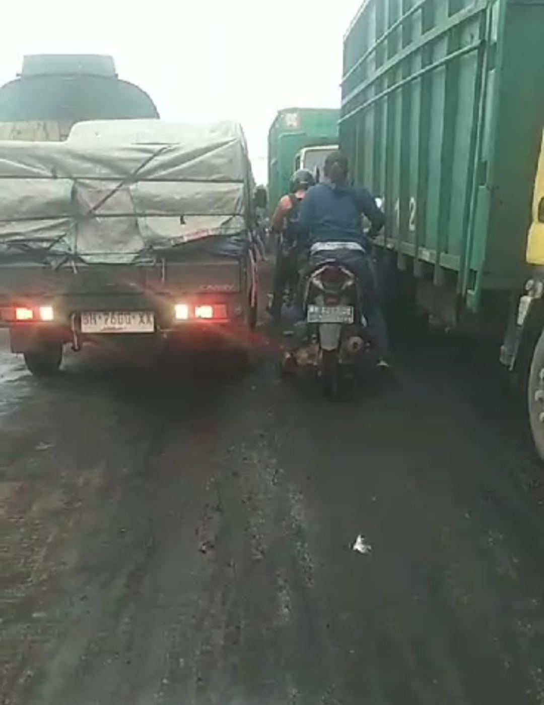 Direktur Lalu Lintas (Dirlantas) Polda Jambi Kombes Pol. Dhafi saat dikonfirmasi mengatakan, kemacetan yang terjadi itu, disebabkan oleh truk angkutan batubara terguling di jalan tersebut. Kejadian tersebut, menghambat angkutan atau kendaraan lain hingga menyebabkan kemacetan yang cukup panjang.